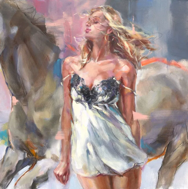 Anna's work is both classical and modern, her romantic figurative works carry with them both tradition and originality. Her work captures the elegance and grace of the female form with both an air of simplicity and sophistication. While Anna's enchanting figures have an aura reminiscent of the Renaissance, and you can place them alongside old masters like Reubens and Rembrandt and draw similarities, the dynamic technique with which she paints, and the expressive freedom and sensuality of her work, creates something refreshingly modern, unique and beautiful.