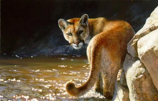 Bonnie Marris has taken an unusual path into art; she developed her talent by portraying animals "from the inside out." While she was a student at Michigan State University, Bonnie illustrated several major books. One volume she worked on was a leading expert s mammalogy text that contained several hundred drawings and detail studies. This massive project attracted the attention of noted zoologist George Schaller, who invited Bonnie to prepare the art for posters that would support his worldwide rare animal relief programs. Beyond academic training and emotional involvement, art requires another element for which there is no substitute: experience. Each year, Bonnie makes two major trips, and countless smaller ones, to observe and learn about the wildlife she loves. In 1980, one such voyage took her to Alaska, where she lived in the wilderness for six months. She recounts, "To get into a natural environment and see the animals on their own terms is as important as knowing the animals themselves. For instance, gray wolves on the tundra—the vast, vast tundra with the wind and other forces of nature at their most extreme—that s what makes them what they are. To stand not far from a grizzly that is so overpowering, so beautiful and so large . . . to watch it pull up a small tree with a swipe of its paw and just a few minutes later see it delicately picking blueberries with its black lips. . . Alaska changed me; it gave me the biggest incentive to paint and increased my interest in the predators: the cats, bears, coyotes, wolves and foxes. They exist on so many levels. Their moods show in their eyes and we can learn so much from them."