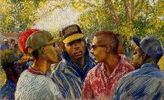 Brenda Joysmith is more than an artist. All her paintings have a story to tell. "Drawing from careful observation of Black people in their ordinary routines, I select a moment that is particularly expressive, or best characterizes my basic idea. Then I work to create a painting that is both meaningful and enjoyable," explains Brenda. Starting with a realistic portrayal of her subject, Brenda s paintings are also impressionistic, interpreting an experience through the subjective use of color and other visual cues. Bright colors that "turn up the volume" are used to express the spirit of children playing ring games or enjoying a parade. Muted marine colors with soft edges and hazy, blurred figures in the distance best describe the calm mood of a couple with introspective expressions looking out over a bay. Brenda grew up in Memphis, Tennessee, in the 1950s and 1960s with four brothers and four sisters. Much of her work is indeed Southern and nostalgic. Now she has returned to her native Memphis, after living for 25 years in California. She says, "The last 25 years in California have expanded my view of the diversity of Black people. Our experience varies by region, generation, religion or socio-economic status. However, most of our cultural roots take us back to the South. I want to remind us of the strengths and positive substance of that experience, connecting with the universal and the timeless." It is the viewer's recognition of these elements and the emotional response to these memories that bring the works of art to life. In 1984 she self-published her first print portfolio of six paintings titled Tapestry. Notably, it is the Tapestry Collection of six limited edition prints. Ms. Joysmith has won numerous awards over the years and her work appears in many prestigious galleries and museums. Over the years, Brenda's art work has received valued exposure through electronic media as it has been displayed on the sets of both network television series (The Cosby Show, A Different World, Amen, Family Matters, Sinbad, In The Heat Of The Night, Sparks, Good News, The Gregory Hines Show, The Jamie Foxx Show, Malcolm and Eddie, The Hughleys, and Cosby) and feature films (Philadelphia, Lethal Weapon III, Ghost Dad, House Party II, Jason's Lyric, A Family Thing, A Preacher's Wife, Love and Basketball, Music of the Heart, All That Glitters, and Kingdom Come). Brenda's original pastel paintings are included in many prestigious individual, corporate, and organization collections; including, Maya Angelou, the Honorable Willie Brown, Roberta Flack, The William King Collection, Dr. Catherine Lowe, Dr. Calvin McLarin, Oprah Winfrey, Alpha Kappa Alpha National Sorority, Chicago's E H S Bethany Hospital Birthing Unit, The Colgate-Palmolive Company Permanent Collection, Fillmore Fell Corporation, MBNA, National Council of Negro Women, National Organization of Black Law Enforcement Executives (NOBLE), San Francisco Art Commission, San Francisco's Skilled Mental Health Nursing Center, Sigma Gamma Rho National Sorority, The Wimmer Companies, and the U.S. Embassy Ambassador's residence in Lesotho, South Africa.
