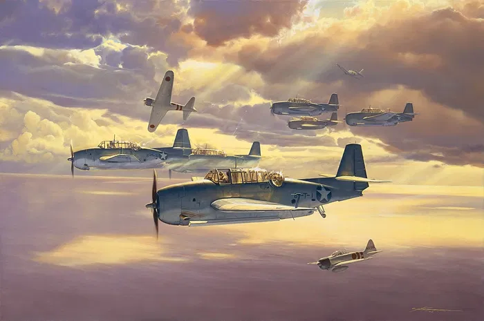 Aviation is this artist s living. Painting is a joy and a choice; not his career. Craig Kodera career is as an airline pilot, so each of his paintings reflect an intimate knowledge of how it feels to fly and what it looks like out the cockpit. "I paint what I see," he says,"and my office window is at 35,000 feet." An appreciation of aviation came easy, since Kodera was raised in what he terms an "aviation family," which included an uncle who flew with the famous Doolittle Raiders during World War II. At an age when most teens were trying to ace the driver s test, Kodera had earned his private pilot s license. A love of painting also came early. Kodera started seriously studying it at fourteen. He graduated from UCLA with a degree in mass communications and spent a year as a commercial artist before joining the Air Force Reserve, where he was assigned to the Air Rescue Service and then the Strategic Air Command. There his knowledge of air war history grew while he logged literally thousands of hours flying. Eventually Kodera left the service and joined American Airlines. When he isn t flying, he s usually painting. His artwork is part of the Smithsonian Institution s National Air and Space Museum permanent collection and hangs in many museums. He is also the charter vice president of the American Society of Aviation Artists, a member of the Air Force Art Program and serves with the Los Angeles Society of Illustrators.