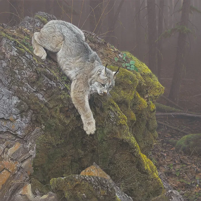 Painter Daniel Smith, who is equal parts hermit, aesthete, and explorer of the outback, has never thought of himself as being a visual provocateur. Who could have thought that classical wildlife art would one day be considered simultaneously accessible and avant-garde? Who would have guessed that images of animals would loom large as perhaps the most potent icons of our time? Animals are telltale totems, not only of the past, but of a yet uncertain future. The opening of the one-man exhibition, "Animal Magnetism: The Wildlife Art of Daniel Smith" at the Eiteljorg Museum of American Indians and Western Art in 2008 was validation of Smith's growing stature in this unique and provocative artistic genre. "In my opinion, Dan Smith is truly one of America's great wildlife painters," says John Geraghty, board member of the Autry Museum of the American West in Los Angeles and a prominent art collector. Over the last decade, Smith's original pieces have been exhibited at, or become part of permanent collections at the Eiteljorg, the Autry, the National Cowboy & Western Heritage Museum, the National Museum of Wildlife Art, the Hiram Blauvelt Art Museum, the Leigh Yawkey Woodson Art Museum, The Bennington Center for the Arts, The Wildlife Experience, The Leanin Tree Museum of Western Art and the Ella Sharp Museum of Art and History. Today, Smith and his wife, Liz, the parents of three