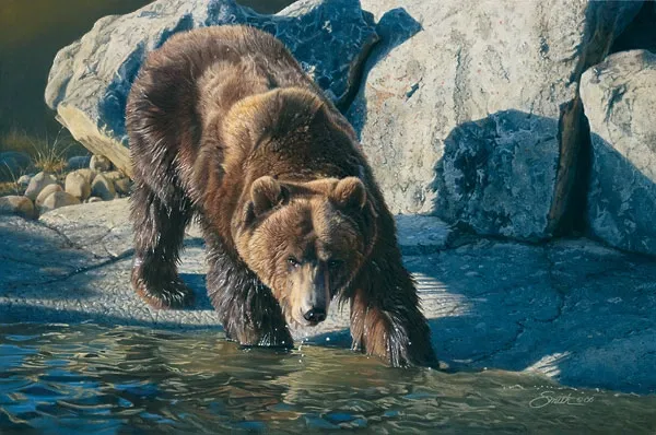 Painter Daniel Smith, who is equal parts hermit, aesthete, and explorer of the outback, has never thought of himself as being a visual provocateur. Who could have thought that classical wildlife art would one day be considered simultaneously accessible and avant-garde? Who would have guessed that images of animals would loom large as perhaps the most potent icons of our time? Animals are telltale totems, not only of the past, but of a yet uncertain future. The opening of the one-man exhibition, "Animal Magnetism: The Wildlife Art of Daniel Smith" at the Eiteljorg Museum of American Indians and Western Art in 2008 was validation of Smith's growing stature in this unique and provocative artistic genre. "In my opinion, Dan Smith is truly one of America's great wildlife painters," says John Geraghty, board member of the Autry Museum of the American West in Los Angeles and a prominent art collector. Over the last decade, Smith's original pieces have been exhibited at, or become part of permanent collections at the Eiteljorg, the Autry, the National Cowboy & Western Heritage Museum, the National Museum of Wildlife Art, the Hiram Blauvelt Art Museum, the Leigh Yawkey Woodson Art Museum, The Bennington Center for the Arts, The Wildlife Experience, The Leanin Tree Museum of Western Art and the Ella Sharp Museum of Art and History. Today, Smith and his wife, Liz, the parents of three