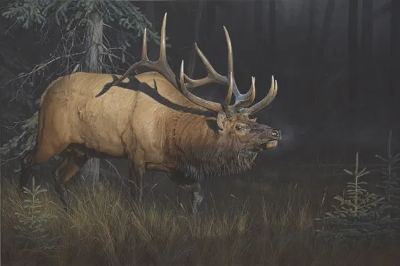 Sun Struck, Smith’s newest Fine Art Limited Edition, demonstrates all the qualities that make the artist an award-winner. While Dan Smith is known for his portraits of elk, we wanted to wait until exactly the right image came along to publish it as a full-size canvas. The instant we saw Sun Struck, we knew we had a winner. As the pale golden dawn greets the mighty elk, Smith’s deft and flawless brushstrokes create a truly unforgettable scene.