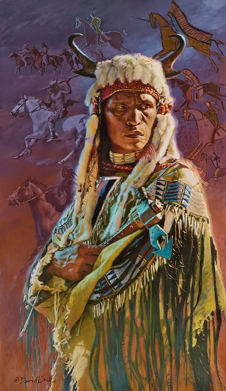 David Yorke was born 1949 in New Jersey and was raised in South Florida. At a very early age, he discovered an ambition to express himself through the visual arts. His family heritage was filled with artistic influences that encouraged his creative pursuits. His formal training was in advertising design, at the University of Florida. David began his art career as a commercial illustrator/designer. His corporate art spanned about 35 years , starting in Miami as an education televison media artist, and eventually led to other creative pursuits in Georgia as a toy prototype designer/photographer, while also freelancing as a book cover illustrator. In 1995, he trained as an animation background painter with the Florida Disney Studios. This became a turning point for his career, and was helpful in further developing his skills as a painter. David worked on five animated films to his credit. In 2004, he left the corporate art world to satisfy a long desired endeavor as a gallery painter. His representational painting style and historical narrative of Native Americans and the American Western Frontier, have been the main focus for his work. Being raised in the 1950s culture of the TV western, played an important role with his fascination of Western Americana. David works from living models that he photographs, based upon his preliminary conceptual sketches. A major aspect of his work also involves extensive historical research and collecting regalia and implements that he uses for reference. David frequently constructs his own artifacts inspired from museum collections to ensure the authenticity of the period. He has Exhibited paintings in numerous shows, galleries and auctions, including The Autry National Center, Buffalo Bill Historical Center, National Cowboy & Western Heritage Museum, Altermann Galleries and Auctioneers and Settlers West Galleries. His work was first featured on the cover of Western Art Collector Magazine in 2008. He is currently represented by the Plainsmen Gallery in Dunedin, Florida. His work has been acquired internationally by private and corporate collectors, including Raymond James Financial Center in St. Petersburg, Florida, The Booth Western Art Museum and The Ella Sharp Museum of Art and History