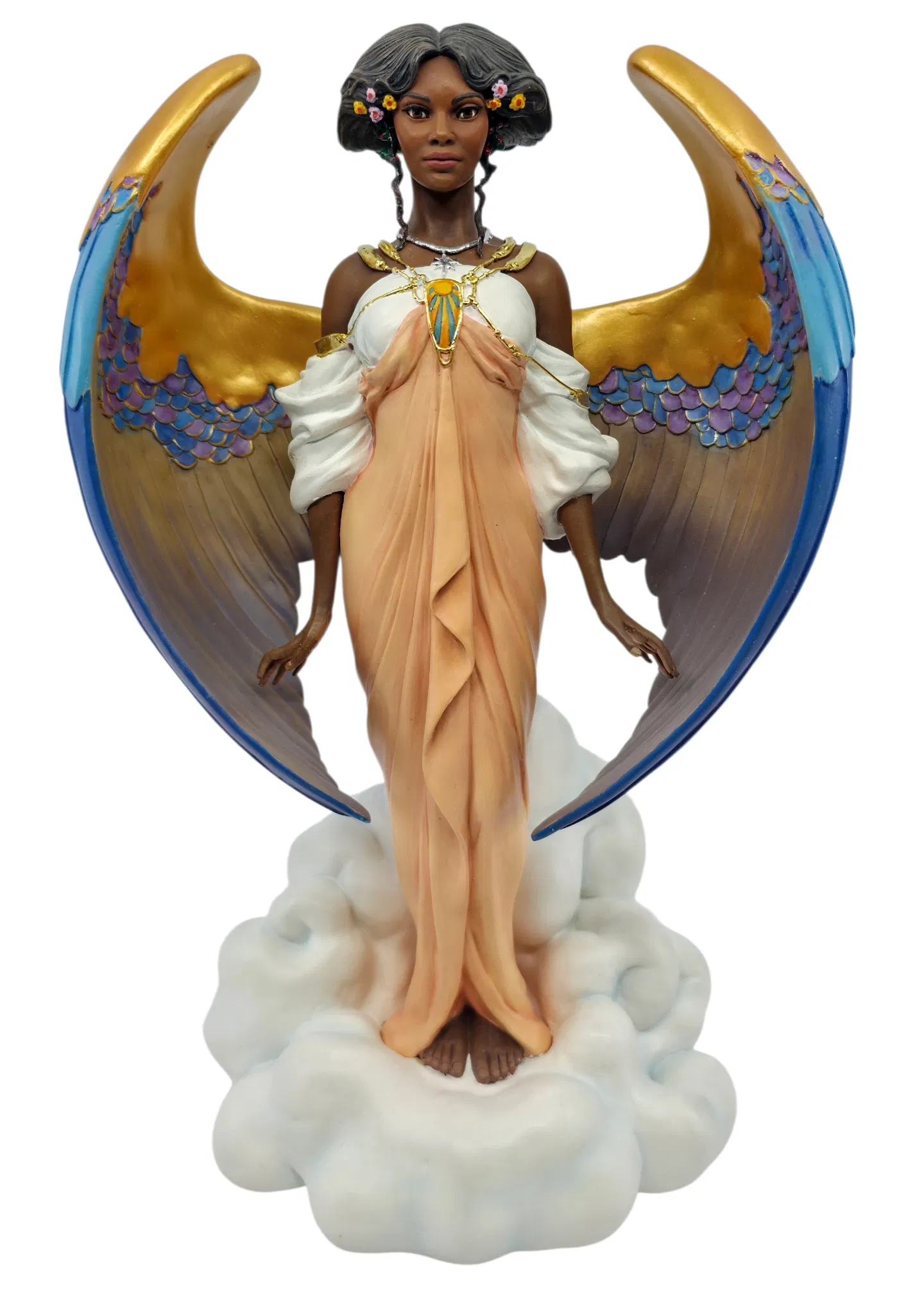"I always knew I wanted to create Ebony Visions'. As an artist who happens to be black, I had distinct ideas about what I would like to see in the line." The elegant compeling figurines he created for the collection are a blen of both Art Nouveau and African culture, which Thomas calls "Afro-Nouveau." - Thomas Blackshear .Thomas Blackshear introduced Ebony Visions in April 1995 with the release of the first six Ebony Visions designs, The Storyteller, The Protector, The Nurturer, Siblings, Madonna and Tender Touch. Since then, Thomas Blackshear has created many new designs to add to the Ebony Visions collection. Thomas Blackshear's Ebony Visions collection is a master work of romantic symbolism. As with his paintings, these sculptures demonstrate Thomas Blackshear's incredible sense of design, unique eclectic style, and extraordinary mastery of color. Elegant drapery and delicate detail tantalize the eye while revealing each sculpted form. Thomas Blackshear's Ebony Visions depicts a full range of emotions that are both powerful and at the same time subtle. He deliberately portrays his Ebony Visions figures in a timeless setting in order to transcend a specific time, place, or culture. This unique collection of limited edition figurines emphasizes the beauty of the human form and symbolizes universal aspirations and ideals of humankind depicted through images that reflect the unique characteristics of the African American culture. For centuries classical beauty has been portrayed predominantly by white artisans who represent white subjects in their art. In this romantic and subtle tour de force, Thomas Blackshear creates a new vision of beauty and human emotion, an Ebony Vision.
