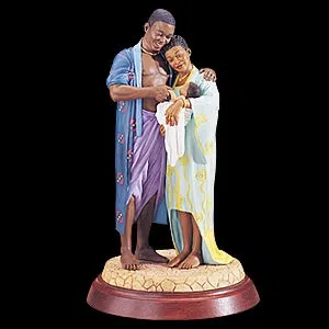 "I always knew I wanted to create Ebony Visions'. As an artist who happens to be black, I had distinct ideas about what I would like to see in the line." The elegant compeling figurines he created for the collection are a blen of both Art Nouveau and African culture, which Thomas calls "Afro-Nouveau." - Thomas Blackshear .Thomas Blackshear introduced Ebony Visions in April 1995 with the release of the first six Ebony Visions designs, The Storyteller, The Protector, The Nurturer, Siblings, Madonna and Tender Touch. Since then, Thomas Blackshear has created many new designs to add to the Ebony Visions collection. Thomas Blackshear's Ebony Visions collection is a master work of romantic symbolism. As with his paintings, these sculptures demonstrate Thomas Blackshear's incredible sense of design, unique eclectic style, and extraordinary mastery of color. Elegant drapery and delicate detail tantalize the eye while revealing each sculpted form. Thomas Blackshear's Ebony Visions depicts a full range of emotions that are both powerful and at the same time subtle. He deliberately portrays his Ebony Visions figures in a timeless setting in order to transcend a specific time, place, or culture. This unique collection of limited edition figurines emphasizes the beauty of the human form and symbolizes universal aspirations and ideals of humankind depicted through images that reflect the unique characteristics of the African American culture. For centuries classical beauty has been portrayed predominantly by white artisans who represent white subjects in their art. In this romantic and subtle tour de force, Thomas Blackshear creates a new vision of beauty and human emotion, an Ebony Vision.
