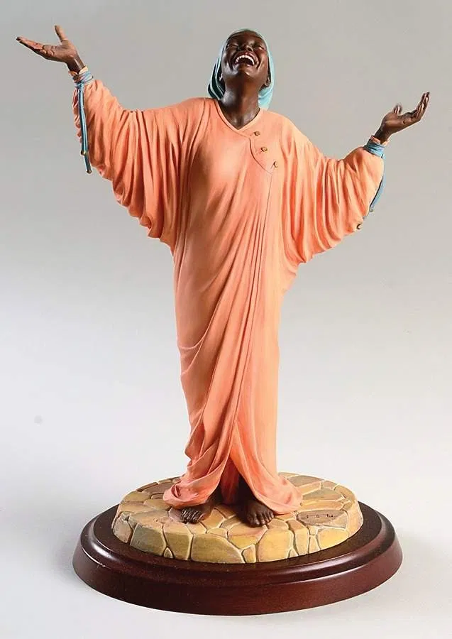 "I always knew I wanted to create Ebony Visions'. As an artist who happens to be black, I had distinct ideas about what I would like to see in the line." The elegant compeling figurines he created for the collection are a blen of both Art Nouveau and African culture, which Thomas calls "Afro-Nouveau." - Thomas Blackshear .Thomas Blackshear introduced Ebony Visions in April 1995 with the release of the first six Ebony Visions designs, The Storyteller, The Protector, The Nurturer, Siblings, Madonna and Tender Touch. Since then, Thomas Blackshear has created many new designs to add to the Ebony Visions collection. Thomas Blackshear's Ebony Visions collection is a master work of romantic symbolism. As with his paintings, these sculptures demonstrate Thomas Blackshear's incredible sense of design, unique eclectic style, and extraordinary mastery of color. Elegant drapery and delicate detail tantalize the eye while revealing each sculpted form. Thomas Blackshear's Ebony Visions depicts a full range of emotions that are both powerful and at the same time subtle. He deliberately portrays his Ebony Visions figures in a timeless setting in order to transcend a specific time, place, or culture. This unique collection of limited edition figurines emphasizes the beauty of the human form and symbolizes universal aspirations and ideals of humankind depicted through images that reflect the unique characteristics of the African American culture. For centuries classical beauty has been portrayed predominantly by white artisans who represent white subjects in their art. In this romantic and subtle tour de force, Thomas Blackshear creates a new vision of beauty and human emotion, an Ebony Vision.