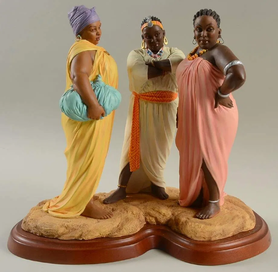 "I always knew I wanted to create Ebony Visions'. As an artist who happens to be black, I had distinct ideas about what I would like to see in the line." The elegant compeling figurines he created for the collection are a blen of both Art Nouveau and African culture, which Thomas calls "Afro-Nouveau." - Thomas Blackshear .Thomas Blackshear introduced Ebony Visions in April 1995 with the release of the first six Ebony Visions designs, The Storyteller, The Protector, The Nurturer, Siblings, Madonna and Tender Touch. Since then, Thomas Blackshear has created many new designs to add to the Ebony Visions collection. Thomas Blackshear's Ebony Visions collection is a master work of romantic symbolism. As with his paintings, these sculptures demonstrate Thomas Blackshear's incredible sense of design, unique eclectic style, and extraordinary mastery of color. Elegant drapery and delicate detail tantalize the eye while revealing each sculpted form. Thomas Blackshear's Ebony Visions depicts a full range of emotions that are both powerful and at the same time subtle. He deliberately portrays his Ebony Visions figures in a timeless setting in order to transcend a specific time, place, or culture. This unique collection of limited edition figurines emphasizes the beauty of the human form and symbolizes universal aspirations and ideals of humankind depicted through images that reflect the unique characteristics of the African American culture. For centuries classical beauty has been portrayed predominantly by white artisans who represent white subjects in their art. In this romantic and subtle tour de force, Thomas Blackshear creates a new vision of beauty and human emotion, an Ebony Vision.