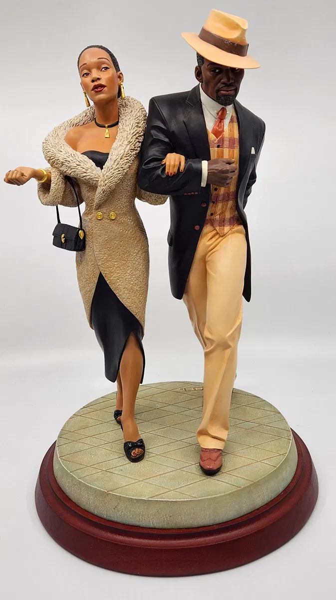 "I always knew I wanted to create Ebony Visions'. As an artist who happens to be black, I had distinct ideas about what I would like to see in the line." The elegant compeling figurines he created for the collection are a blen of both Art Nouveau and African culture, which Thomas calls "Afro-Nouveau." - Thomas Blackshear .Thomas Blackshear introduced Ebony Visions in April 1995 with the release of the first six Ebony Visions designs, The Storyteller, The Protector, The Nurturer, Siblings, Madonna and Tender Touch. Since then, Thomas Blackshear has created many new designs to add to the Ebony Visions collection. Thomas Blackshear's Ebony Visions collection is a master work of romantic symbolism. As with his paintings, these sculptures demonstrate Thomas Blackshear's incredible sense of design, unique eclectic style, and extraordinary mastery of color. Elegant drapery and delicate detail tantalize the eye while revealing each sculpted form. Thomas Blackshear's Ebony Visions depicts a full range of emotions that are both powerful and at the same time subtle. He deliberately portrays his Ebony Visions figures in a timeless setting in order to transcend a specific time, place, or culture. This unique collection of limited edition figurines emphasizes the beauty of the human form and symbolizes universal aspirations and ideals of humankind depicted through images that reflect the unique characteristics of the African American culture. For centuries classical beauty has been portrayed predominantly by white artisans who represent white subjects in their art. In this romantic and subtle tour de force, Thomas Blackshear creates a new vision of beauty and human emotion, an Ebony Vision.