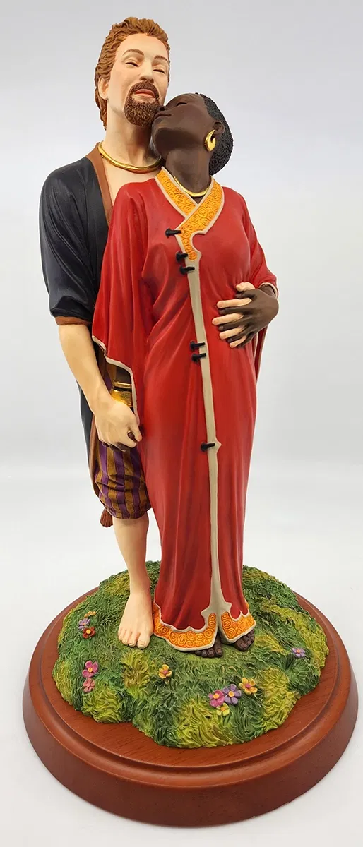 "I always knew I wanted to create Ebony Visions'. As an artist who happens to be black, I had distinct ideas about what I would like to see in the line." The elegant compeling figurines he created for the collection are a blen of both Art Nouveau and African culture, which Thomas calls "Afro-Nouveau." - Thomas Blackshear .Thomas Blackshear introduced Ebony Visions in April 1995 with the release of the first six Ebony Visions designs, The Storyteller, The Protector, The Nurturer, Siblings, Madonna and Tender Touch. Since then, Thomas Blackshear has created many new designs to add to the Ebony Visions collection. Thomas Blackshear's Ebony Visions collection is a master work of romantic symbolism. As with his paintings, these sculptures demonstrate Thomas Blackshear's incredible sense of design, unique eclectic style, and extraordinary mastery of color. Elegant drapery and delicate detail tantalize the eye while revealing each sculpted form. Thomas Blackshear's Ebony Visions depicts a full range of emotions that are both powerful and at the same time subtle. He deliberately portrays his Ebony Visions figures in a timeless setting in order to transcend a specific time, place, or culture. This unique collection of limited edition figurines emphasizes the beauty of the human form and symbolizes universal aspirations and ideals of humankind depicted through images that reflect the unique characteristics of the African American culture. For centuries classical beauty has been portrayed predominantly by white artisans who represent white subjects in their art. In this romantic and subtle tour de force, Thomas Blackshear creates a new vision of beauty and human emotion, an Ebony Vision.