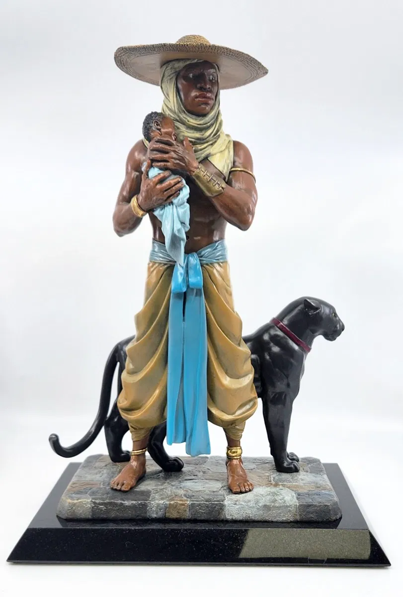 "I always knew I wanted to create Ebony Visions'. As an artist who happens to be black, I had distinct ideas about what I would like to see in the line." The elegant compeling figurines he created for the collection are a blen of both Art Nouveau and African culture, which Thomas calls "Afro-Nouveau." - Thomas Blackshear .Thomas Blackshear introduced Ebony Visions in April 1995 with the release of the first six Ebony Visions designs, The Storyteller, The Protector, The Nurturer, Siblings, Madonna and Tender Touch. Since then, Thomas Blackshear has created many new designs to add to the Ebony Visions collection. Thomas Blackshear's Ebony Visions collection is a master work of romantic symbolism. As with his paintings, these sculptures demonstrate Thomas Blackshear's incredible sense of design, unique eclectic style, and extraordinary mastery of color. Elegant drapery and delicate detail tantalize the eye while revealing each sculpted form. Thomas Blackshear's Ebony Visions depicts a full range of emotions that are both powerful and at the same time subtle. He deliberately portrays his Ebony Visions figures in a timeless setting in order to transcend a specific time, place, or culture. This unique collection of limited edition figurines emphasizes the beauty of the human form and symbolizes universal aspirations and ideals of humankind depicted through images that reflect the unique characteristics of the African American culture. For centuries classical beauty has been portrayed predominantly by white artisans who represent white subjects in their art. In this romantic and subtle tour de force, Thomas Blackshear creates a new vision of beauty and human emotion, an Ebony Vision.