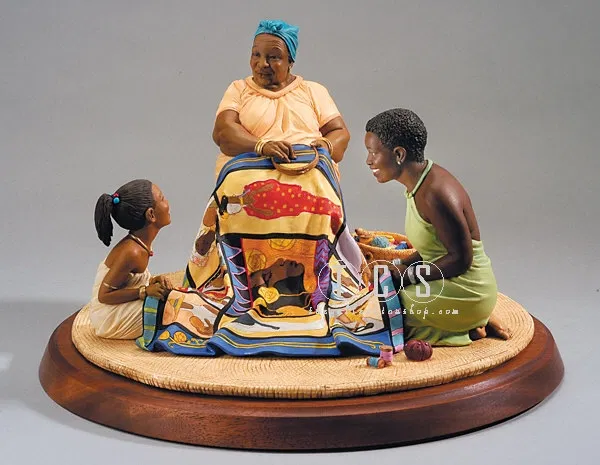 "I always knew I wanted to create Ebony Visions'. As an artist who happens to be black, I had distinct ideas about what I would like to see in the line." The elegant compeling figurines he created for the collection are a blen of both Art Nouveau and African culture, which Thomas calls "Afro-Nouveau." - Thomas Blackshear .Thomas Blackshear introduced Ebony Visions in April 1995 with the release of the first six Ebony Visions designs, The Storyteller, The Protector, The Nurturer, Siblings, Madonna and Tender Touch. Since then, Thomas Blackshear has created many new designs to add to the Ebony Visions collection. Thomas Blackshear's Ebony Visions collection is a master work of romantic symbolism. As with his paintings, these sculptures demonstrate Thomas Blackshear's incredible sense of design, unique eclectic style, and extraordinary mastery of color. Elegant drapery and delicate detail tantalize the eye while revealing each sculpted form. Thomas Blackshear's Ebony Visions depicts a full range of emotions that are both powerful and at the same time subtle. He deliberately portrays his Ebony Visions figures in a timeless setting in order to transcend a specific time, place, or culture. This unique collection of limited edition figurines emphasizes the beauty of the human form and symbolizes universal aspirations and ideals of humankind depicted through images that reflect the unique characteristics of the African American culture. For centuries classical beauty has been portrayed predominantly by white artisans who represent white subjects in their art. In this romantic and subtle tour de force, Thomas Blackshear creates a new vision of beauty and human emotion, an Ebony Vision.