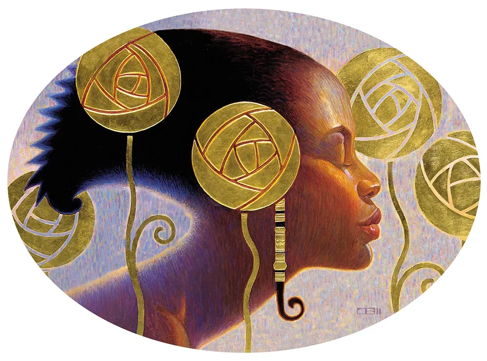 "I always knew I wanted to create Ebony Visions'. As an artist who happens to be black, I had distinct ideas about what I would like to see in the line." The elegant compeling figurines he created for the collection are a blen of both Art Nouveau and African culture, which Thomas calls "Afro-Nouveau." - Thomas Blackshear .Thomas Blackshear introduced Ebony Visions in April 1995 with the release of the first six Ebony Visions designs, The Storyteller, The Protector, The Nurturer, Siblings, Madonna and Tender Touch. Since then, Thomas Blackshear has created many new designs to add to the Ebony Visions collection. Thomas Blackshear's Ebony Visions collection is a master work of romantic symbolism. As with his paintings, these sculptures demonstrate Thomas Blackshear's incredible sense of design, unique eclectic style, and extraordinary mastery of color. Elegant drapery and delicate detail tantalize the eye while revealing each sculpted form. Thomas Blackshear's Ebony Visions depicts a full range of emotions that are both powerful and at the same time subtle. He deliberately portrays his Ebony Visions figures in a timeless setting in order to transcend a specific time, place, or culture. This unique collection of limited edition figurines emphasizes the beauty of the human form and symbolizes universal aspirations and ideals of humankind depicted through images that reflect the unique characteristics of the African American culture. For centuries classical beauty has been portrayed predominantly by white artisans who represent white subjects in their art. In this romantic and subtle tour de force, Thomas Blackshear creates a new vision of beauty and human emotion, an Ebony Vision.