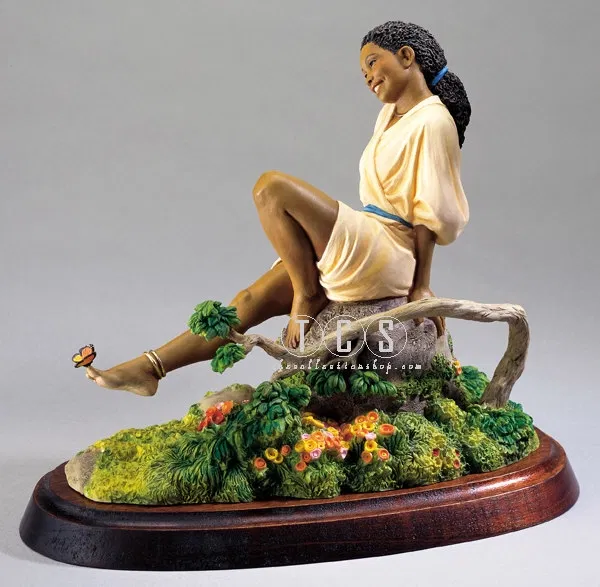 "I always knew I wanted to create Ebony Visions'. As an artist who happens to be black, I had distinct ideas about what I would like to see in the line." The elegant compeling figurines he created for the collection are a blen of both Art Nouveau and African culture, which Thomas calls "Afro-Nouveau." - Thomas Blackshear .Thomas Blackshear introduced Ebony Visions in April 1995 with the release of the first six Ebony Visions designs, The Storyteller, The Protector, The Nurturer, Siblings, Madonna and Tender Touch. Since then, Thomas Blackshear has created many new designs to add to the Ebony Visions collection. Thomas Blackshear's Ebony Visions collection is a master work of romantic symbolism. As with his paintings, these sculptures demonstrate Thomas Blackshear's incredible sense of design, unique eclectic style, and extraordinary mastery of color. Elegant drapery and delicate detail tantalize the eye while revealing each sculpted form. Thomas Blackshear's Ebony Visions depicts a full range of emotions that are both powerful and at the same time subtle. He deliberately portrays his Ebony Visions figures in a timeless setting in order to transcend a specific time, place, or culture. This unique collection of limited edition figurines emphasizes the beauty of the human form and symbolizes universal aspirations and ideals of humankind depicted through images that reflect the unique characteristics of the African American culture. For centuries classical beauty has been portrayed predominantly by white artisans who represent white subjects in their art. In this romantic and subtle tour de force, Thomas Blackshear creates a new vision of beauty and human emotion, an Ebony Vision.