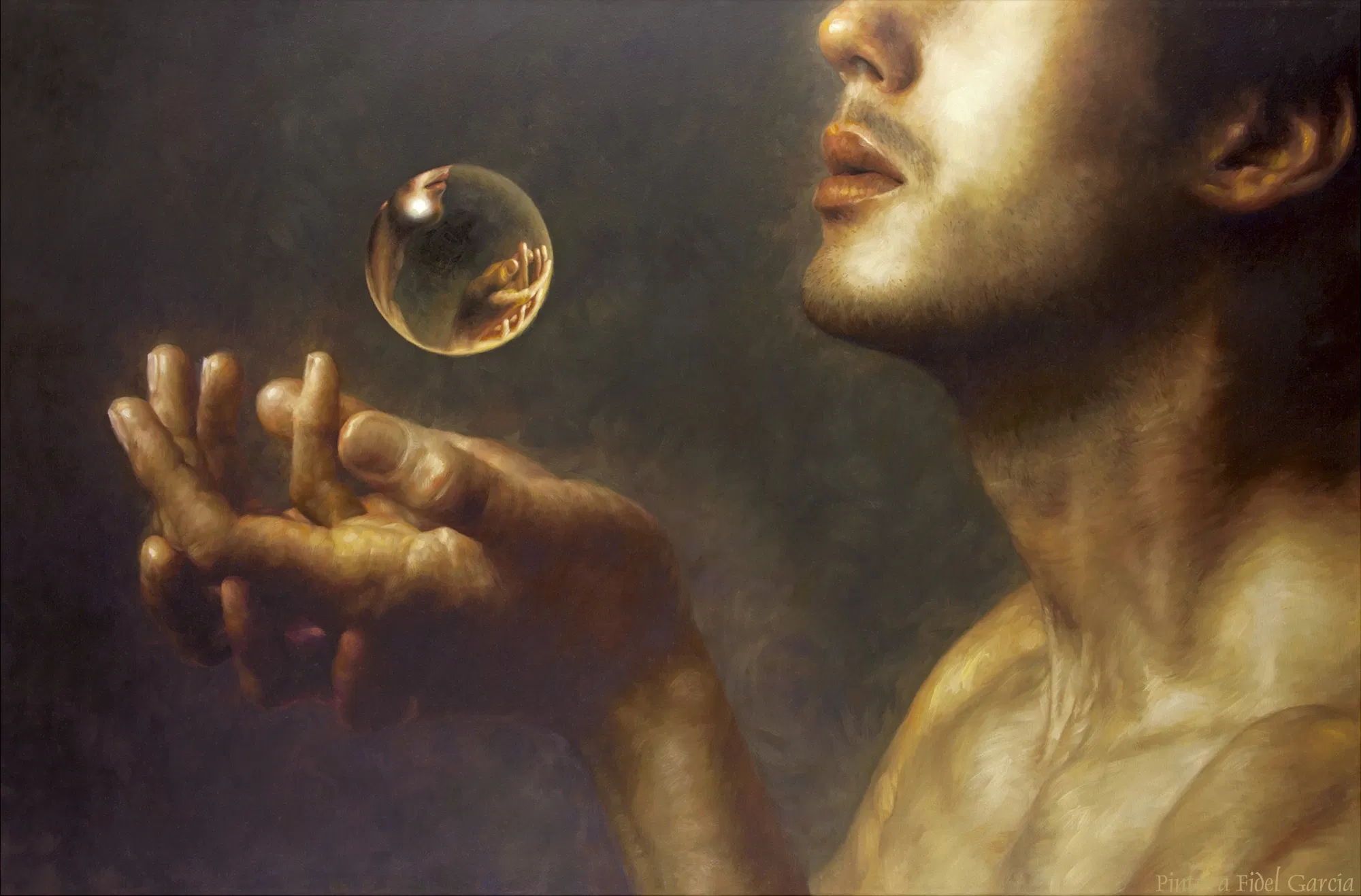 "Art expresses the soul of humanity in our common journey across the ages." The art of Fidel Garcia blends figurative realism and abstract expressionism. His paintings call upon the viewer to experience the concurrency of our corporeal and spiritual selves, the coincidence of reality and fantasy, and the simultaneous existence of the physical and the metaphysical. Rather than simply asking for acknowledgement of these diametric forces, Garcia s paintings assist us in finding the harmony and balance between them. Each image that emerges from his evolving series of canvases explores an unexpected and uncharted inner and outer world of human imagination. Garcia visually explores illusion and reality, the dichotomy of life and the beyond, in his most recent black and white collections. In this series, Garcia explores the variety of drama between life and the afterlife, each image taking an unexpected twist into reality and then into a state of surrealism. From the foundation of his Mexican family and mentors of the dramatic history of Mexican art, Garcia has developed a unique internationally dimensional style that is imaginatively imbued with the visual power of the Renaissance artists, artist of the Spanish Baroque Diego Velazquez, American artist John Singer Sargeant, French Ecole des Beaux-Arts artist William Bourguereau, and modern artists Salvador Dali and Gustav Klimt. As with so many of the great Masters, Garcia s unique vision is an expression of his own spiritual journey. Garcia s father also had a unique artistic talent, which he sacrificed in order to provide for his wife and seven children. When Garcia s artistic ability manifested itself at the age of seven, his father supported and encouraged its development resulting in early recognition of Garcia s talent during his childhood. When he reached manhood, Garcia met and married Maria Violetta, who also supported his calling as an artist. With the pressures of providing for his young family, Garcia faced the same decision his father had faced decades earlier – whether to continue to pursue his artistic career with all of its instability and uncertainty or to abandon that calling in search of a financially stable profession. Ultimately it was the support of his father, his wife and a brush with death in a bus accident which claimed the life of his closest friend – a fellow painter who was passionate about Garcia continuing his artistic career – that convinced him that he must continue to answer his true calling. "For me, success as an artist means that I am able to live my life with creativity and joy." Over the last two decades, Garcia s unique artistic vision has gained recognition throughout his native Mexico and in Spain, resulting in numerous exhibitions, awards and museum placements including the National Museum of Spain, the Puebla Historical Museum and the Amparo Museum in Mexico. The recent introduction of Garcia s work to the United States is drawing further recognition.