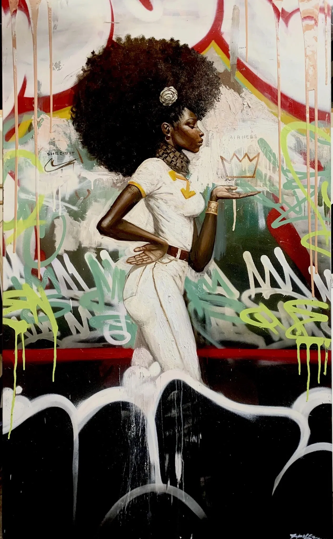 In fact, it was while dancing and touring the nation and European continent that he chanced to visit The Louvre Museum in Paris that he "met his Muse". As he walked the halls there, he was consumed by what he saw. Looking at the work of the Masters in The Louvre, he was reminded of what he had unconsciously reached for in his sprawling graffiti pieces; he recognized realms of color, style, passionate expression and possibilities that he had never before imagined.