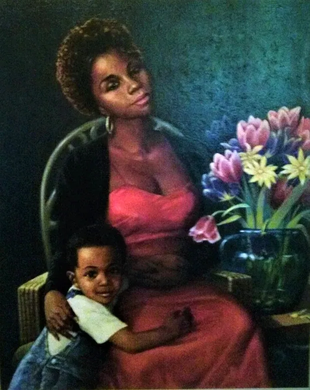 Gilbert Young's support of various community activities and events in his native town of Cincinnati, Ohio spans over two decades. He was active there in both the artistic and scholastic arenas. Young served as Director and Conservator of the Fine Arts Collection for the University of Cincinnati for twenty-six years. He also served as Artist-in Residence for the University in 1994-1995. Dating back to 1975, this multi-talented, multi-faceted, internationally known artist has lent the use of his images and time to many community projects and organizations. Young served as a consultant to the Harriet Beecher Stowe House Project, a renovation and restoration project for the Harriet Beecher Stowe house, creating a cultural arts center for the visual and performing arts in Cincinnati. In 1991, when the Cincinnati branch of the National Council of Negro Women hosted its first "Black Family Reunion", Gilbert was asked to provide the image that would become the official poster of the event. He also lent the use of his image, "Inside Daddy's World" , to The Black Male Coalition of Greater Cincinnati, Inc. in 1995 as the cover of their brochure and one of his most profound works, a commissioned portrait of civil rights leader Dr. martin Luther King hangs in the lobby of University Hospital.
