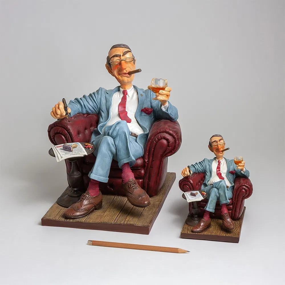 From the early 1980's, Guillermo Forchino experiments with various materials to create his works of art. This research began in the city of his birth Rosario Argentina at the Ecole des Beaux-Arts and then continued during three years of studies in art restoration and conservation at the Sorbonne University in Paris, France. During his studies he discovered and mastered many classic techniques and materials. After completing his studies in Paris, Guillermo returned to Argentina where he directed the Juan B. Castagnino atelier of art restoration for the Museum of Beaux-Arts in Rosario. It was during this period that Forchino began creating figures made from wrapped bands of cloth where the visible parts of the body (head and hands) were made from wax and paper mache colored with natural pigments. From the end of the 1980's, Forchino chose polyresins to create figurines and scenes that often resemble the world of comic strip and cartoon characters. These are typically unusual and humorous subjects such as a family leaving on vacation in an overloaded car with flat tires, or a tired old American pick-up truck from the 1950's with equally tired passengers. Mr. Forchino has also chosen to create other modes of transportation such as boats, planes and motorcycles and has even used a floating bathtub in his works. His creations are always full of humor and finesse and are created with a unique character. In recent years, Guillermo has also created a line of individuals in sports and a variety of professions that was named the "Professionals Series". Also these creations have found a large collector audience worldwide. The average height of these figurines is 45 cm. Recently a smaller version of the Professionals was introduced the "Special editions Series", approx. 50% smaller . Guillermo has regular expositions in France, in Argentina and in the Netherlands. Mr. Forchino lives and works in Paris, his workshop is only a few steps away from the world famous Pere Lachaise cemetery. In 2003 a collaboration between Guillermo and VMM resulted in the worldwide introduction of replicas of Guillermo's work. These reproductions are fully handmade and hand painted, just like the originals, under the supervision of Guillermo himself, by highly skilled artisans in the Far East. Some of these artworks are reproduced in the same size as the original that Mr. Forchino created, some are reduced in size to 50 or 75% of the original. Through these initiatives, the Comic Art of Guillermo Forchino is available for a large group of art lovers in the form of limited editions, in numbered series. Found only in specially selected stores, each piece is identified by a stamped signature and a unique number on the bottom of the item. A numbered certificate of authenticity completes each package.