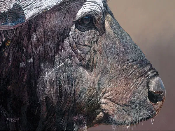 Guy Combes was most recently featured at the Society of Animal Artists exhibition and sale in San Diego, California where his painting Leopard Lounge was a show favorite. He is also actively involved in efforts to prevent the Tanzanian government from building a road across the northern migration routes of the Serengeti National Park. To learn how you can help go to http://www.savetheserengeti.org