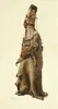 NOTES: BLACKFOOT CEREMONIAL HEADDRESS — Lithograph - This is a Blackfoot Indian of the 1830s. He is wearing a ceremonial stand-up bonnet which is worn by senior tribesmen at warrior society meetings and victory fetes. In later years, it was also worn for the ceremony of the Sun Dance. It denotes a war party leader. The pipe he is holding is a wolf-hide sleeve. This warrior has the status of being a pipe carrier which is an honor..