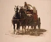 NOTES: CHUCK WAGON — Lithograph - The chuck wagon of the open range would accompany the cowboys, longhorns and cows out on the range. The period depicted is approximately the 1920s or 1930s when they still had open range.