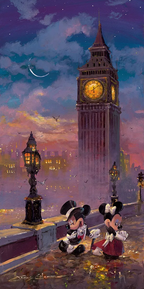 James Coleman Mickey and Minnie in London Deluxe Edition Hand-Embellished Giclee on Canvas
