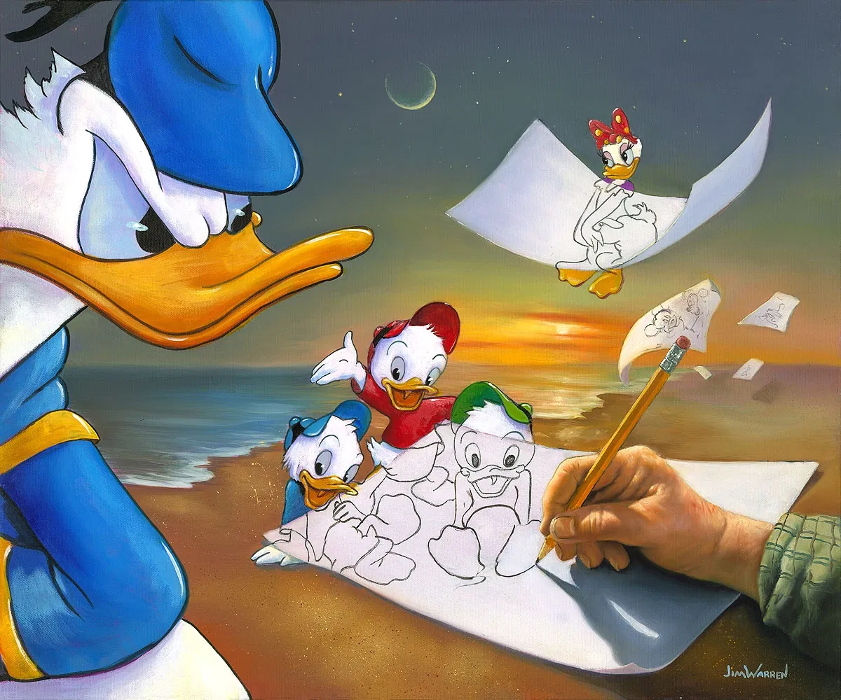 Jim Warren Donald Duck Off the Page Hand-Embellished Giclee on Canvas