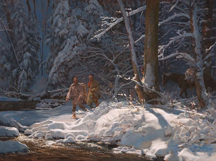 "John Buxton was born in the small southern town of Oxford, North Carolina. He excelled at art from childhood. After two years of general college in his home state, he earned his art degree from the Art Center College of Design in Los Angeles, California. He was a successful illustrator for 31 years, working in Detroit, Cleveland and Pittsburgh. During this time, he illustrated two books for the National Geographic Society and developed a fascination with documentation and truth in art. In 1994 he left illustration and began painting subjects more personal to his interests. Buxton soon began exhibiting his painting, placing two works in the Birds in Art show at the Leigh Yawkey Woodson Art Museum. Northlight Books later reproduced these two paintings in The Best of Wildlife Art 2 by Rachel Rubin World. He entered, and placed in the Top 100 in the Arts For The Parks competition. The Society of Animal Artists elected him to membership and invited him to show in their national exhibitions. He exhibited with the American Academy of Equine Artists before settling into his true niche: Historical Art. Buxton s historical images of the 18th century often depict scenes from the birth of our nation, allowing the viewer to witness momentous events or experiences from everyday life of the frontier. Many historical sites display Buxton s extensively researched works and several documentary films have been aired that featured his paintings. Buxton s paintings are available as a CD Teaching Aid for educators wishing to give students a more intimate view of America s historical heritage, effectively making history come alive. His original paintings and commissioned works are in great demand. Buxton exhibits his original art at Settlers West Galleries in Arizona, Gallery One of Ohio and Lord Nelson s Gallery in Gettysburg. Buxton has shown his artwork at the Gilcrease Museum and his largest painting; a life-size standing portrait of Abraham Lincoln hangs in a place of honor at the National Civil War Museum.