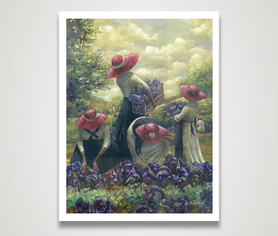 John Holyfield Purple Cabbage And Red Hats Giclee On Canvas