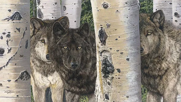 Such is the case here with Brothers and Sisters. We can immediately see three of the Elsinore Clan offspring lurking among the aspens. Close examination will reveal Judy has concealed a fourth, though this member of the pack remains only in spirit. She is no longer with the pack, but the memory of her place and role within it still lingers.