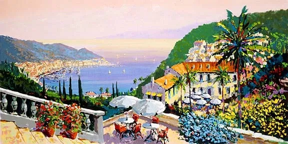 "Let the heart be free. Being alive, inhale the air. Feel the ocean breeze. Deep blue of boundless ocean and sky. Sun shines over the coast city. Horizon so wide and endless. Always energetic, always dynamic. Not a hint of solitary life here." ” Kerry Hallam Kerry Hallam is as refreshing and spirited as his paintings. He creates enticing images through bold palettes and captivating compositions. Born in Northern England, Hallam showed early artistic talent when he won a six-year scholarship to London University's Central College of Art. After a formal art education under British master painters Leslie Cole, Patrick Heron and Hans Tisdale, he completed his military service in the prestigious Gurkha brigade in Hong Kong and Malaya. Hallam's talent was further acknowledged when he was selected for inclusion in Britain's Royal Society of Artists in Watercolour. Through innumerable one-man shows, Kerry Hallam has been honored by galleries around the world having shown at exhibitions in Paris, London, Tokyo, New York, Beverly Hills, Hong Kong, San Francisco and many other cities. His work has been featured in countless newspaper and magazine articles as well as in PBS television specials.