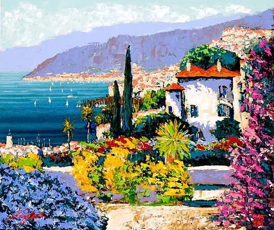 "Let the heart be free. Being alive, inhale the air. Feel the ocean breeze. Deep blue of boundless ocean and sky. Sun shines over the coast city. Horizon so wide and endless. Always energetic, always dynamic. Not a hint of solitary life here." ” Kerry Hallam Kerry Hallam is as refreshing and spirited as his paintings. He creates enticing images through bold palettes and captivating compositions. Born in Northern England, Hallam showed early artistic talent when he won a six-year scholarship to London University's Central College of Art. After a formal art education under British master painters Leslie Cole, Patrick Heron and Hans Tisdale, he completed his military service in the prestigious Gurkha brigade in Hong Kong and Malaya. Hallam's talent was further acknowledged when he was selected for inclusion in Britain's Royal Society of Artists in Watercolour. Through innumerable one-man shows, Kerry Hallam has been honored by galleries around the world having shown at exhibitions in Paris, London, Tokyo, New York, Beverly Hills, Hong Kong, San Francisco and many other cities. His work has been featured in countless newspaper and magazine articles as well as in PBS television specials.