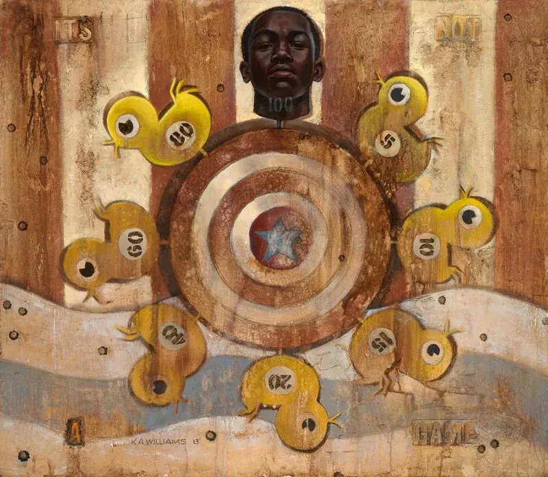 Kevin A. Williams better known by the art moniker WAK, his initials backwards, is an American painter and businessman from Chicago’s Southside. He is one of the most celebrated figurative storytellers of this era with his collection of paintings being the most widely circulated urban fine art series in the world.At the age of 15, Kevin A. Williams started working as an artist, on Chicago’s Historic East 87th Street Black Business District, drawing and painting images for clothing boutiques and hair salons. At 19, he became a cosmetology illustrator for Soft Sheen hair products which eventually led to a commission from Alberto Culver USA, to create "Standing Appointment" which depicts 4 women under hair dryers, for their Motions hair care line. It is regarded the most popular art image in the history of the hair care industry. While developing his fine art line, Williams worked exclusively with the late Actor\Comedian Bernie Mac as his personal artist for over 15 years, creating over 20 original paintings, including a very important piece commissioned by the Actor\Comedian as a gift for Oprah Winfrey. The piece titled “Anointed Gift” was unveiled on Oprah’s televised 50th birthday celebration, and was regarded by her as “the most amazing gift”. This amazing gift currently hangs in the lobby of Winfrey’s Leadership Academy for Girls in South Africa. In November 2009, Williams was commissioned by the Professional Golf Association (PGA) to memorialize Ted Rhodes, John Shippen, Bill Spiller, the first African-American inductees to the PGA who were denied membership during their professional careers, along with honorary member, heavyweight boxing champion Joe Louis. Williams also made history by becoming the 1st African American artist to have a painting to permanently hang in the PGA National Museum in Port St. Lucie, Fla. In April 2018 ,Williams was commissioned by Alpha Kappa Alpha Sorority Incorporated to create a centerpiece for the newly renovated national headquarters in Chicago,Illinois. " The One" depicting the founding, legacy and continued life of Alpha Kappa Alpha Sorority..