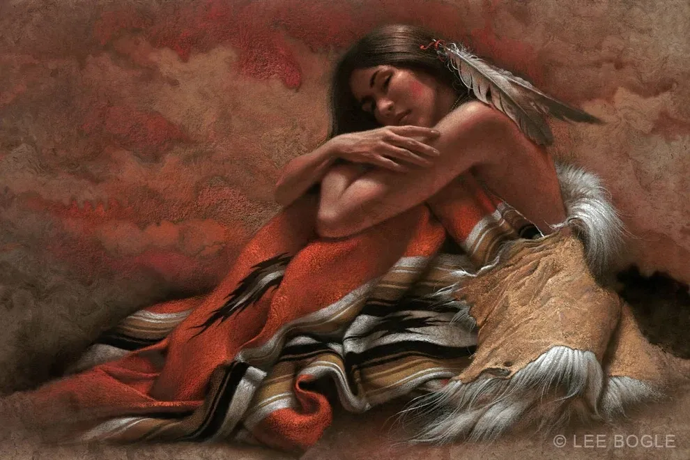 Lee Bogle can't remember when he wasn't an artist. Drawing, painting, and picturing life are among his earliest memories and have always been more than a pastime. For many years he has described his art, prints and posters as a passion. "Painting defines me," he says from his home in Kirkland, Washington, where he lives with his wife, Sherri, and their two sons. "It's who I am, not just what I do." Bogle received his degree in art from Central Washington University and pursued graduate study at the University of Washington. His art, prints and posters are exhibited widely in galleries and museums throughout the country. With a growing number of avid collectors, his limited edition prints sell out soon after release. Collectors know him for his art, prints and posters of Native Americans, often solitary figures of women whose beauty far surpasses the superficial. Other works depict men and women, who appear as soulmates rather than mere romantic couples. While his paintings artistically speak for themselves, they also reflect his appreciation for the organic. Working with muted, atmospheric colors, he is a master at depicting the expressive quality of light.