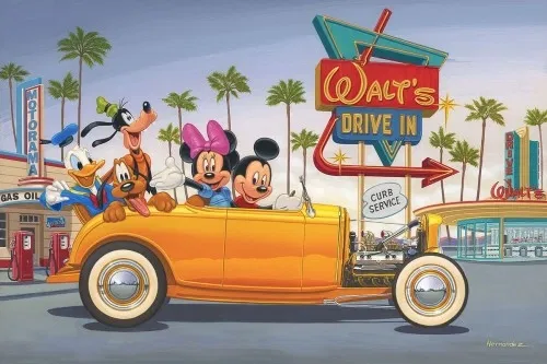 Brilliantly composed and filled with vibrant color, the paintings of Manuel Hernandez are a feast for the eyes. Reflecting the mastery and energy of some of the finest artists to ever fill the pages of Disney history, Hernandez s work captures the magic and essence of this timeless artistic tradition and moves it reverently into the twenty-first century. Manuel s meticulous attention to detail is the hallmark to his paintings. Traditionally trained, Manuel Hernandez, a Southern California native was originally inspired and influenced by the contemporary illustrative works of J.C. Leyendecker, Dean Cornwell and Norman Rockwell. Having studied and apprenticed as an illustrator, Manuel Hernandez developed his skills with pen and brush to a level of mastery that would come to satisfy even the most discerning eye of some of the more critical Disney art traditionalists. When asked to contribute his artistic interpretation of the Walt Disney legend Hernandez set about to create a fresh perspective utilizing a modern Americana theme made famous by his early illustrative influences. Armed with many years of study and an equally demanding self-drive for perfectionism, Hernandez incorporated the powerful style of Muralist Diego Rivera, which when blended with his illustrative technique helped to create the unique and passionate artwork he would become famous for.