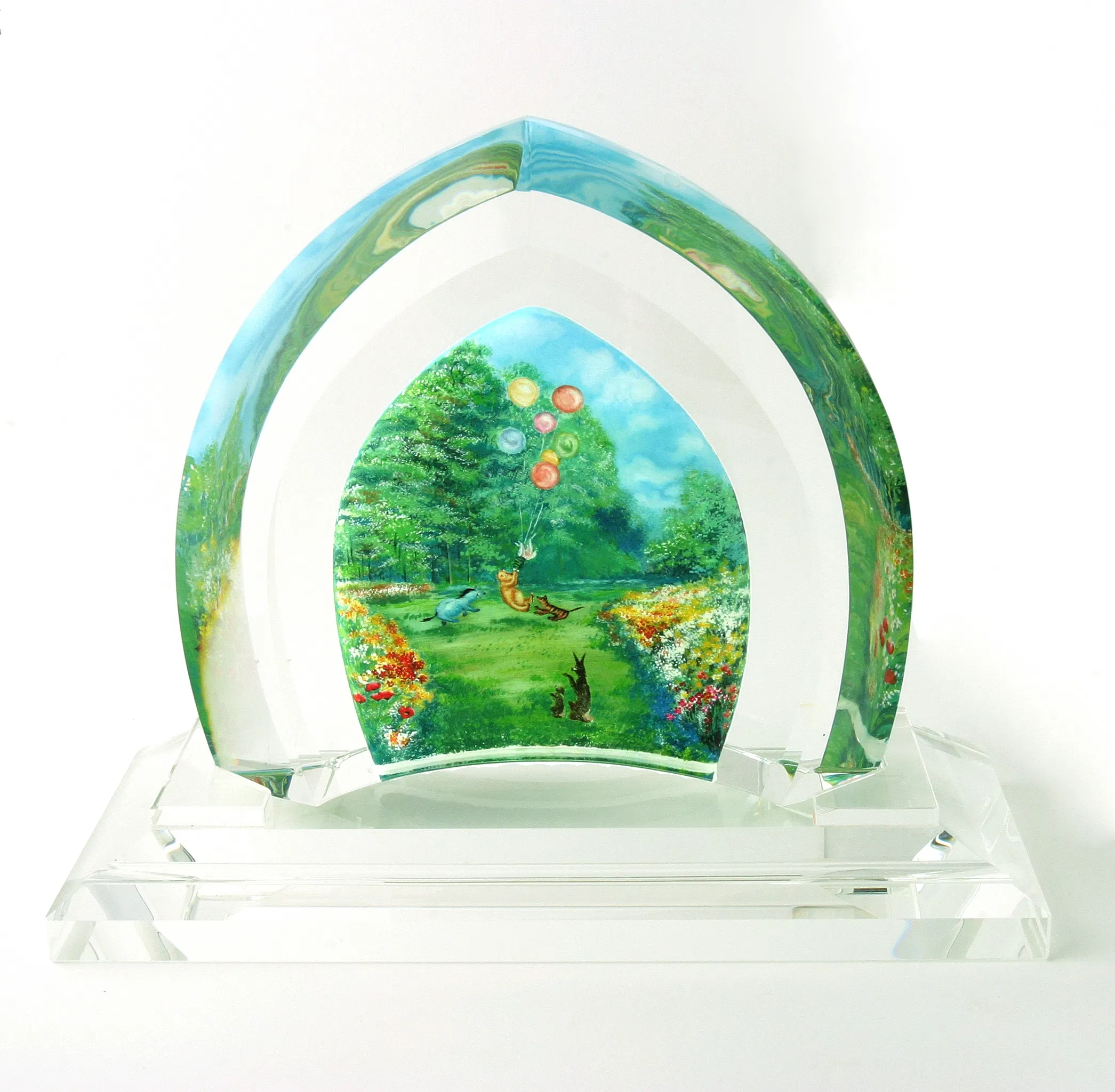 Whether you are a gallery, museum, or private collector, these heirloom quality masterpieces will bring wonder to all your guests when you share with them one unfathomable fact " Each piece of Disney Fine Art Glass is completely hand made and is painted with a tiny brush.