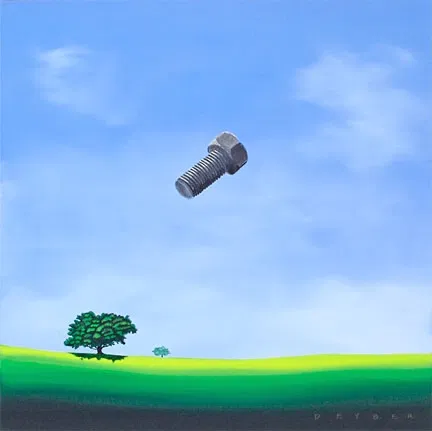 Robert Deyber s artwork is full of surprises. Every canvas revels in the artist s sense of humor, each painting a visual rendering of a clever turn on a common phrase. Despite his sense of fun, however, Robert Deyber is a seriously skilled painter. He is endlessly intrigued by visual imaginings that reside in the realm between reality and fantasy, and he is clearly able to render these imaginings brilliantly. His artwork is highly narrative in nature; his paintings convey an almost dreamlike quality to the bemused viewer. Born and raised in Greenwich, Connecticut, Deyber began drawing at an early age. Art was a necessary means of escape from an otherwise difficult world, one in which he set his mind free to visit the most remote places-a wheat field in South Dakota, the dunes of the Gobi desert, the moons of Jupiter-all within easy reach for a very imaginative young boy. Throughout his paintings, Robert Deyber moves in and out of visual themes and story lines. Compelled to create imagery where he uses a combination of highly stylized composition, light and contrasting colors, his goal is to apply all three skillfully, thereby drawing the viewer into his painting without overpowering or confusing. Deyber is a visual raconteur - a storyteller with a paintbrush, his mind s eye planted deep within the subconscious. With artistic roots that hail from the Surrealist movement, among his heroes are Rene Magritte and Salvatore Dali. While many of Deyber's paintings contain elements derived from dreams created out of the unpredictable imagery found in the subconscious, the extraterrestrial flowers have more in common with the worlds of alternate natural history imagined by Alexis Rockman or Walton Ford, and the visual rendition of current phraseology and popular culture are more in the tradition of the Pop Art movement. It is, in the end, the undecided tone between sincerity and irony that makes Robert Deyber's artwork distinctly contemporary, his visual vocabulary distinctly his own, but with a worldwide audience.