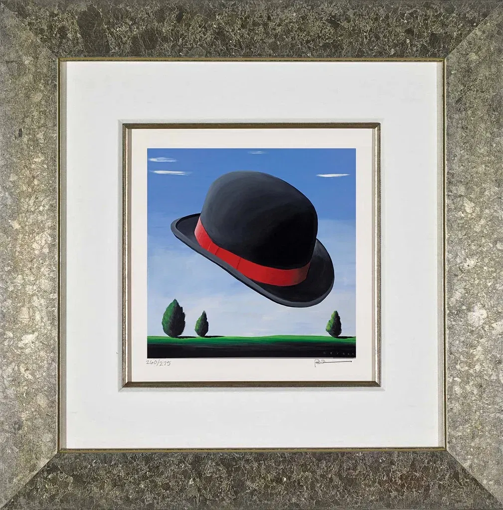 Robert Deyber At The Drop Of A Hat Bowler Framed hand-crafted stone lithograph