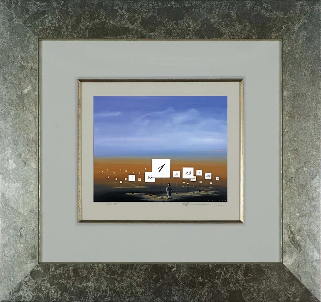Robert Deyber Back To Square One Framed hand-crafted stone lithograph