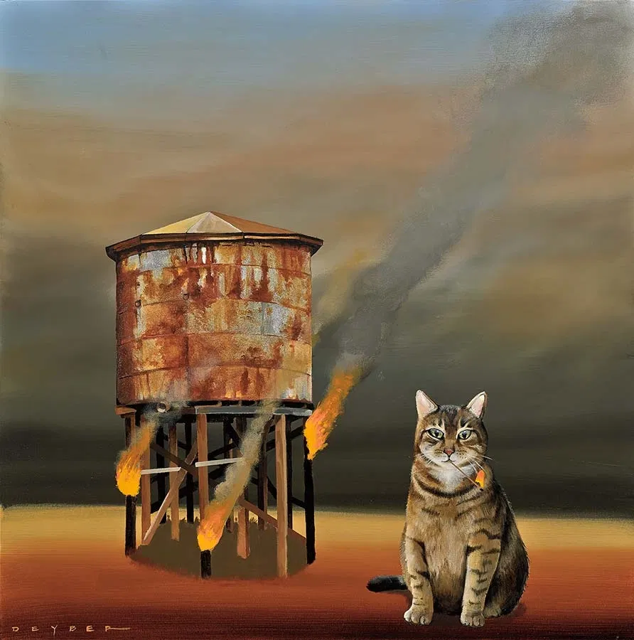 Robert Deyber s artwork is full of surprises. Every canvas revels in the artist s sense of humor, each painting a visual rendering of a clever turn on a common phrase. Despite his sense of fun, however, Robert Deyber is a seriously skilled painter. He is endlessly intrigued by visual imaginings that reside in the realm between reality and fantasy, and he is clearly able to render these imaginings brilliantly. His artwork is highly narrative in nature; his paintings convey an almost dreamlike quality to the bemused viewer. Born and raised in Greenwich, Connecticut, Deyber began drawing at an early age. Art was a necessary means of escape from an otherwise difficult world, one in which he set his mind free to visit the most remote places-a wheat field in South Dakota, the dunes of the Gobi desert, the moons of Jupiter-all within easy reach for a very imaginative young boy. Throughout his paintings, Robert Deyber moves in and out of visual themes and story lines. Compelled to create imagery where he uses a combination of highly stylized composition, light and contrasting colors, his goal is to apply all three skillfully, thereby drawing the viewer into his painting without overpowering or confusing. Deyber is a visual raconteur - a storyteller with a paintbrush, his mind s eye planted deep within the subconscious. With artistic roots that hail from the Surrealist movement, among his heroes are Rene Magritte and Salvatore Dali. While many of Deyber's paintings contain elements derived from dreams created out of the unpredictable imagery found in the subconscious, the extraterrestrial flowers have more in common with the worlds of alternate natural history imagined by Alexis Rockman or Walton Ford, and the visual rendition of current phraseology and popular culture are more in the tradition of the Pop Art movement. It is, in the end, the undecided tone between sincerity and irony that makes Robert Deyber's artwork distinctly contemporary, his visual vocabulary distinctly his own, but with a worldwide audience.