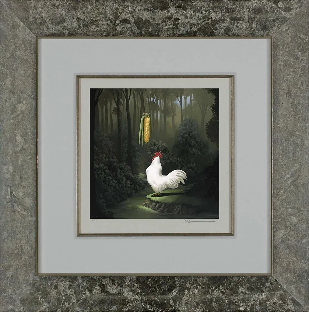 Robert Deyber Cock Tease Framed hand-crafted stone lithograph