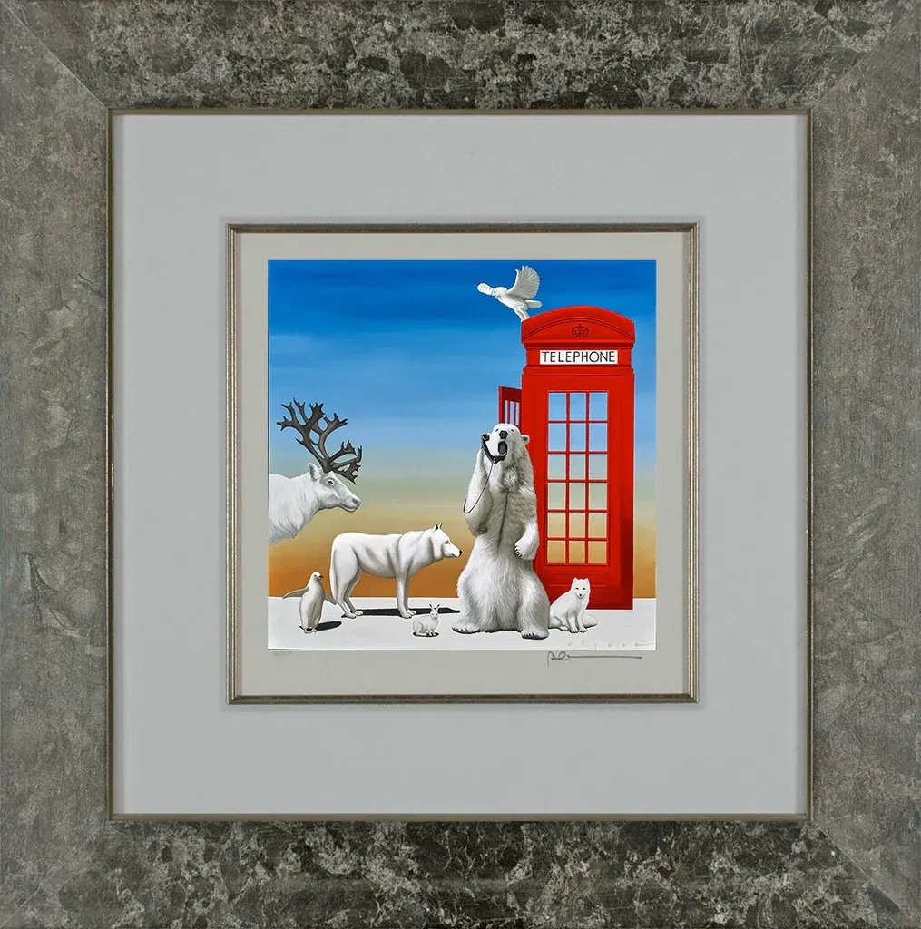 Robert Deyber Cold Call Arctic Framed hand-crafted stone lithograph