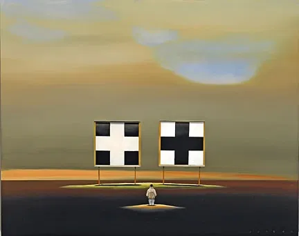 Robert Deyber Double Crossed hand-crafted stone lithograph