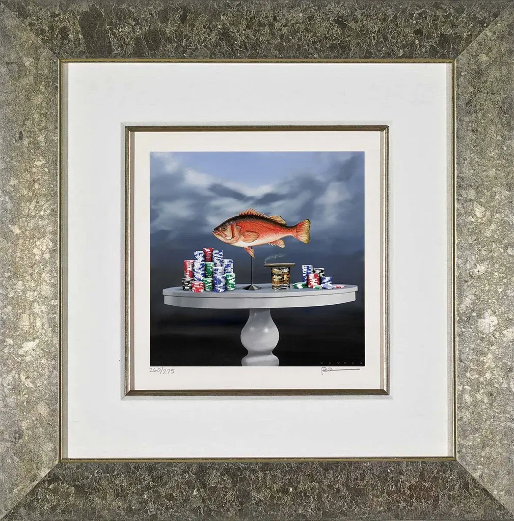 Robert Deyber Fish & Chips Framed hand-crafted stone lithograph