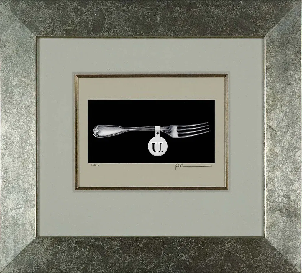 Robert Deyber Fork U Framed hand-crafted stone lithograph