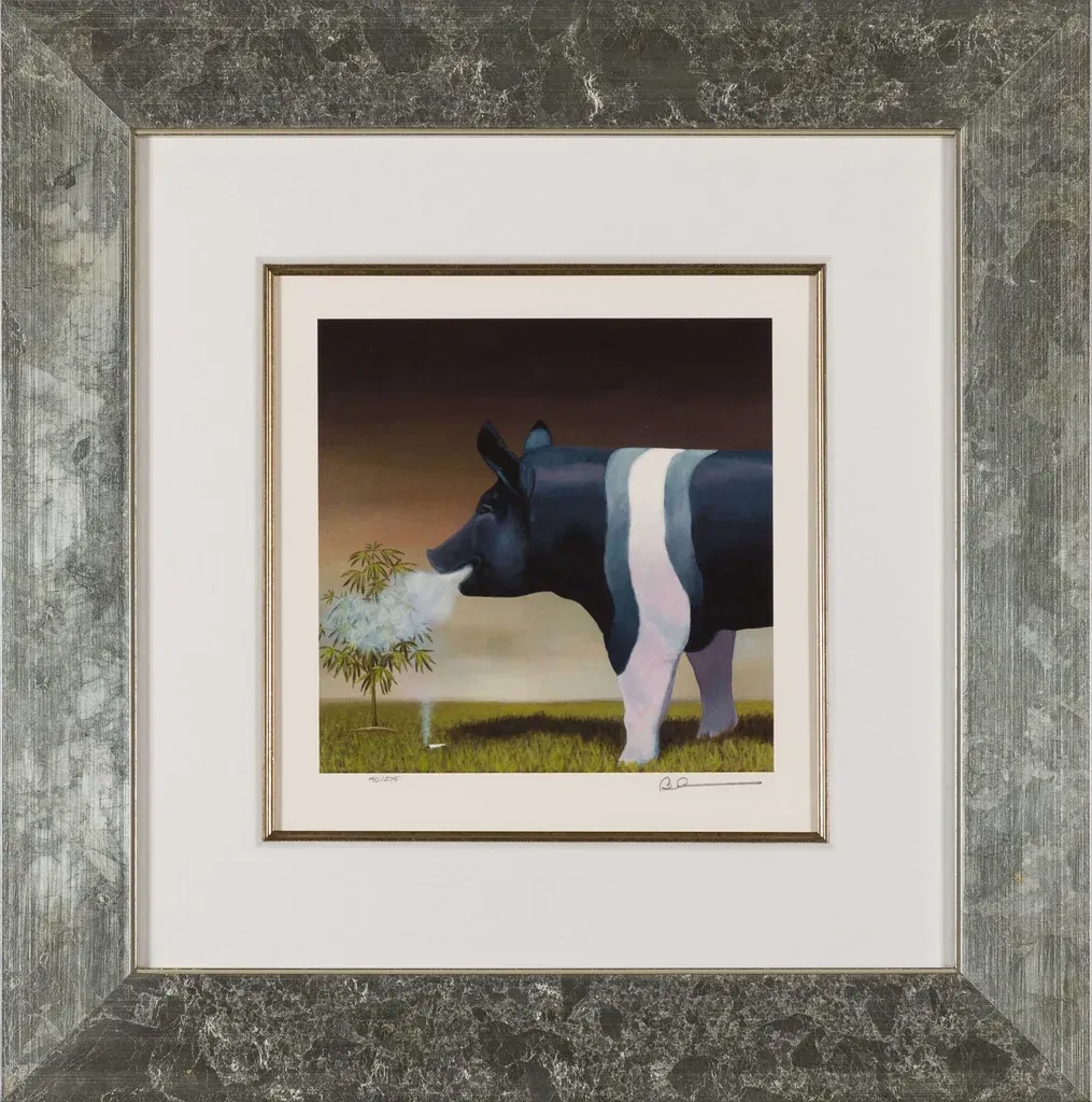 Robert Deyber High On The Hog Framed hand-crafted stone lithograph