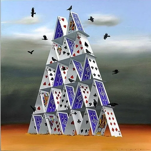 Robert Deyber House of Cards hand-crafted stone lithograph