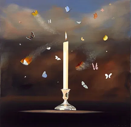 Robert Deyber Like Moths To A Flame hand-crafted stone lithograph