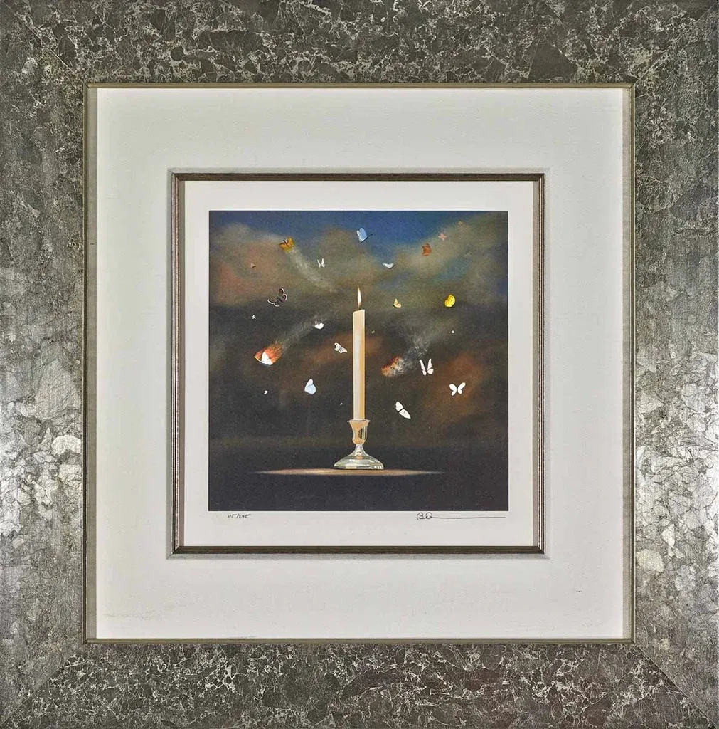 Robert Deyber Like Moths To A Flame Framed hand-crafted stone lithograph