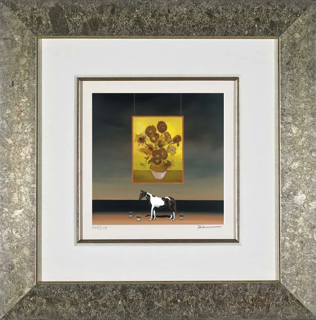 Robert Deyber Paint Horse Van Gogh Framed hand-crafted stone lithograph